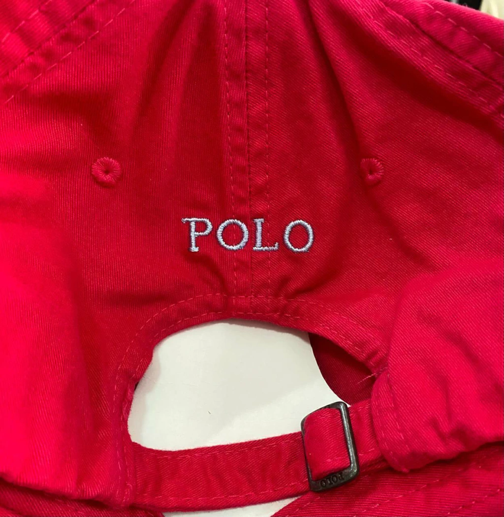 Nome da marca "POLO" gravado no fecho e na parte de trás do boné