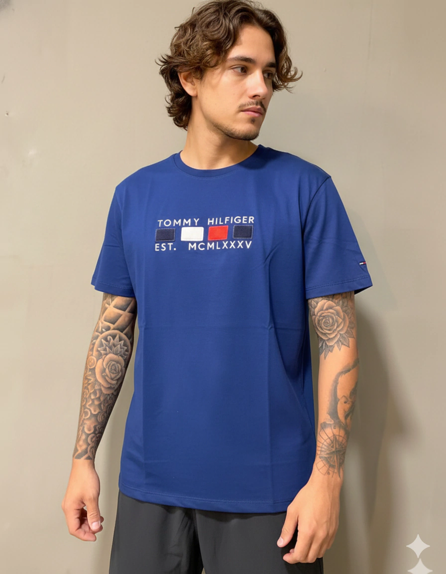 Descubra a Camiseta Tommy H. Quadrados - Azul Marinho, um modelo que une estilo e conforto. Confeccionada em 100% algodão, proporciona um caimento perfeito para o dia a dia. O bordado apeluciado e a camiseta em cor vibrante garante um acabamento sofisticado e durável. Além disso, acompanha tags padrão do site, assegurando a autenticidade do produto. Ideal para quem busca qualidade e design em uma peça única.