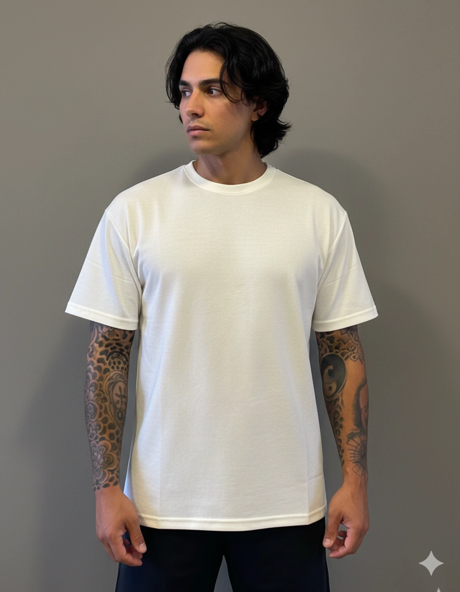 Camiseta boxy fit confeccionada em tecido encorpado de algodão piquet.